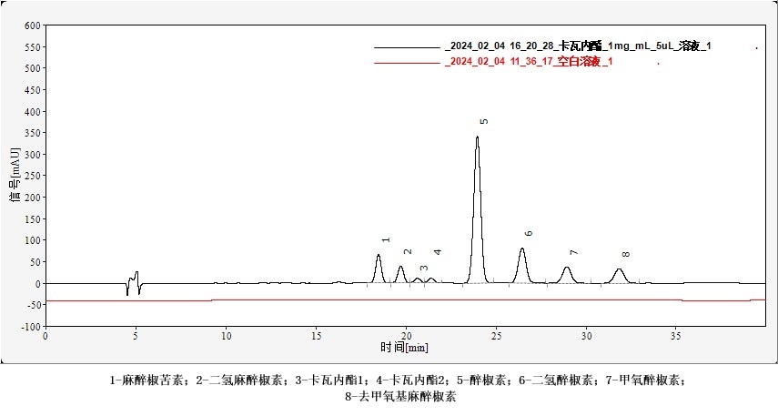 麻醉椒苦素、二氫麻醉椒素、卡瓦內(nèi)酯1、卡瓦內(nèi)酯2、醉椒素、二氫醉椒素、甲氧醉椒素、去甲氧基麻醉椒素