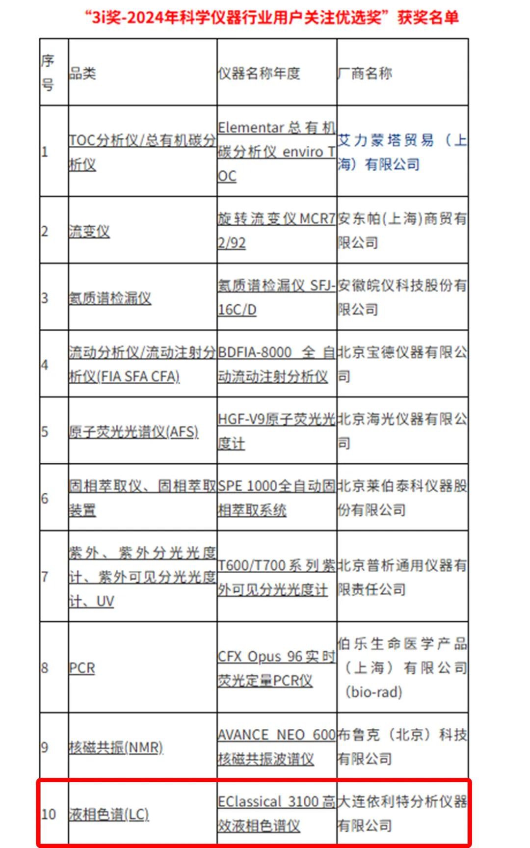“3i獎(jiǎng)-科學(xué)儀器行業(yè)用戶關(guān)注優(yōu)選獎(jiǎng)”作為儀器信息網(wǎng)重要產(chǎn)品獎(jiǎng)項(xiàng)之一,已成功評(píng)選過17屆,該獎(jiǎng)項(xiàng)的評(píng)選旨在推薦出上一年度用戶關(guān)注度高的優(yōu)質(zhì)儀器,為用戶選型采購時(shí)提供重要的參考依據(jù)。該獎(jiǎng)項(xiàng)自2007年評(píng)選以來,共選出廣受用戶高度關(guān)注的國內(nèi)、外儀器400余臺(tái),得到廣大儀器廠商和用戶的一致肯定。