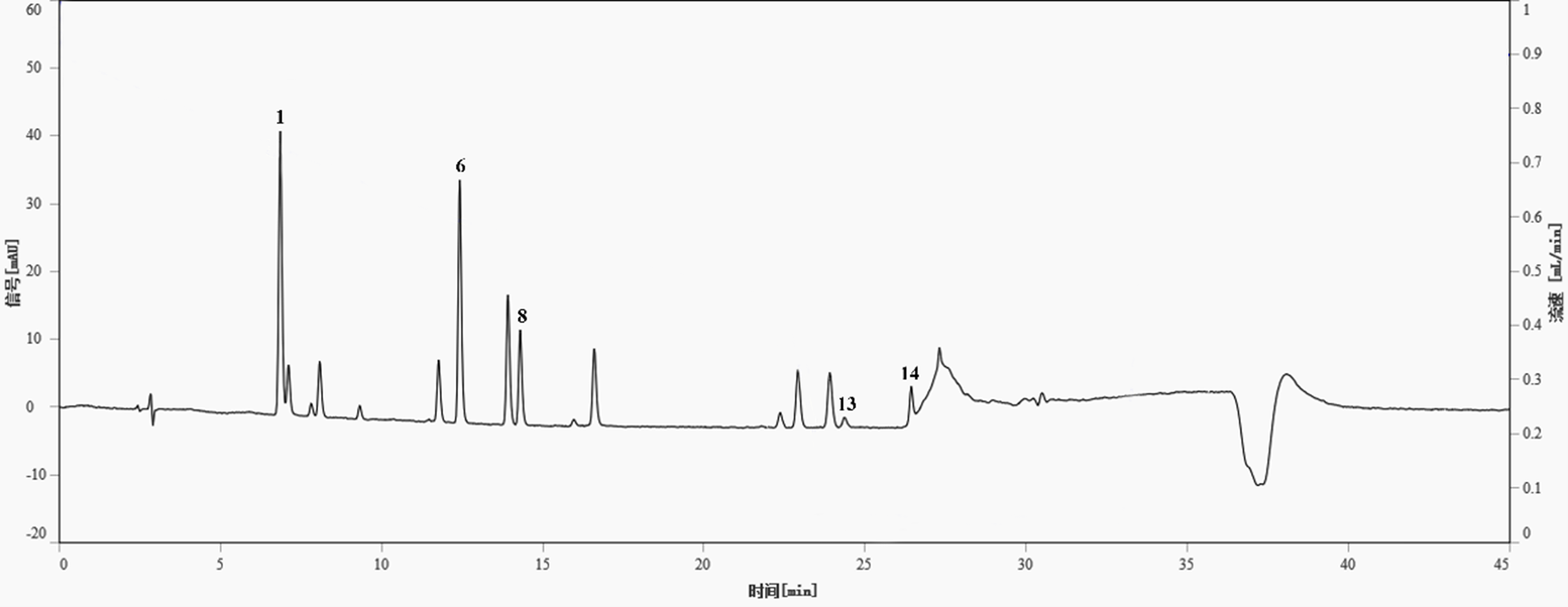 流動相組成:流動相A:20mmol乙酸銨溶液;流動相B:甲醇