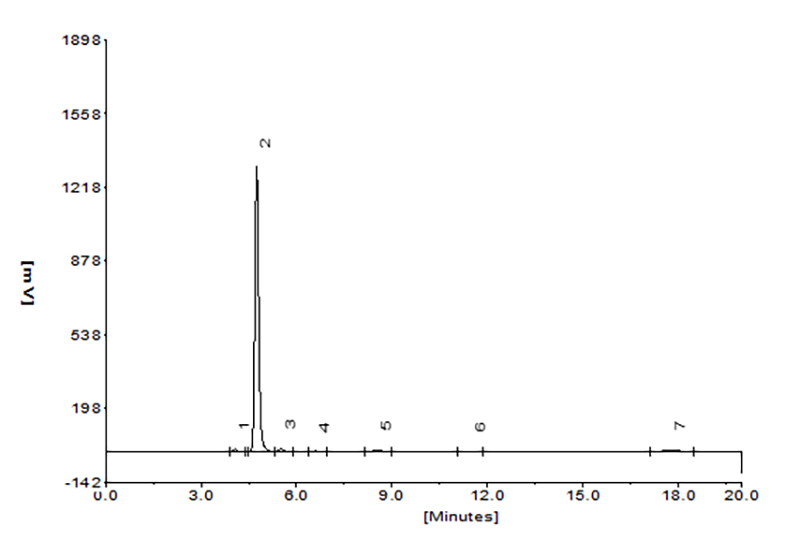 | 峰號 | 組分名 | 保留時間(min) | 峰面積(mV *sec) | 塔板數(shù)(N) | 拖尾因子 | 分離度 |