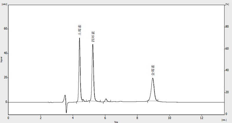 食品安全是關(guān)系國計民生的大事,抗生素殘留也一直倍受人們關(guān)注。經(jīng)常使用含有抗生素的食品,會使抗生素在體內(nèi)蓄積,使人產(chǎn)生耐藥性,引起各種組織器官病變,甚至癌變。依利特使用EClassical 3200液相色譜儀匹配經(jīng)典的SinoChrom ODS-BP色譜柱,對豬肉中殘留的四環(huán)素類抗生素進行分析檢測。