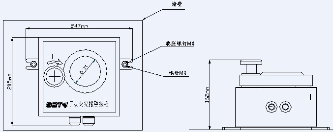 2、新疆J-SAM-GST9116手動報警按鈕室外立柱安裝配套產(chǎn)品:LZ10011型防雨罩與LZ1001型立柱;壁掛安裝時配套產(chǎn)品:LZ10011型防雨罩。 LZ10011型防雨罩與LZ1001型立柱配套安裝示意圖如圖所示