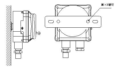 LZ10002型防雨罩采用壁掛式安裝,防護等級IP65,其外型尺寸及安裝示意圖如圖所示