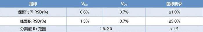 2、保留時間與峰面積 RSD 均低于國標(biāo)限值,重復(fù)性穩(wěn)定。