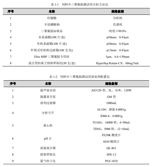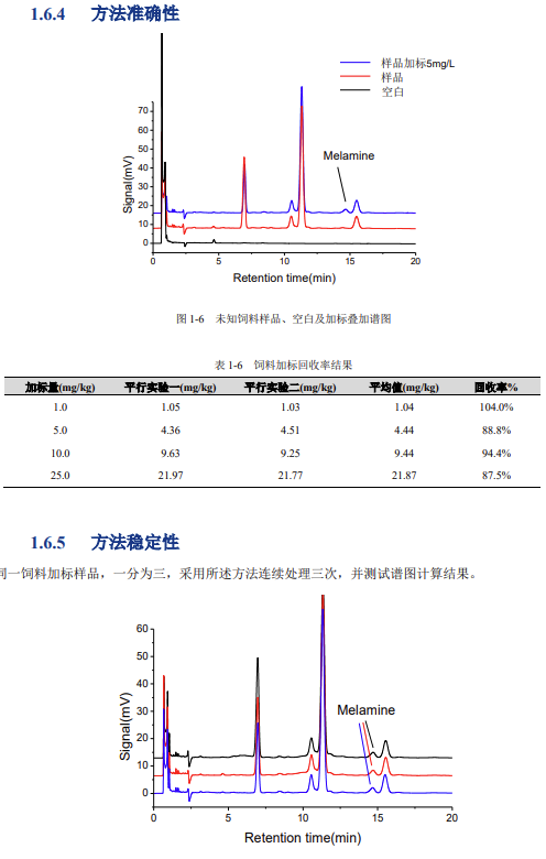 飼料中三聚氰胺經(jīng)三氯乙酸提取、離心后,經(jīng)混合型陽離子交換固相萃取柱凈化,洗脫物吹干后用流動相溶解,用高效液相色譜儀進行測定。