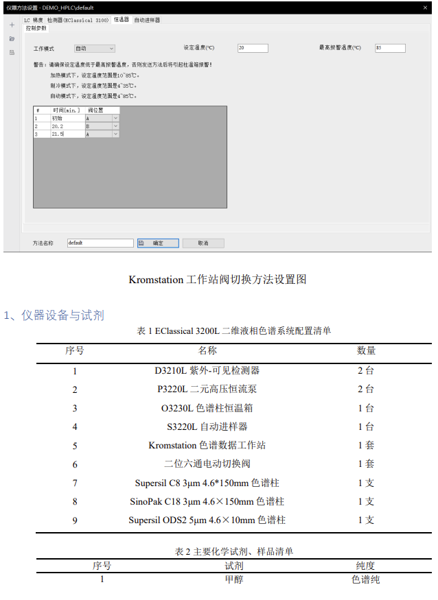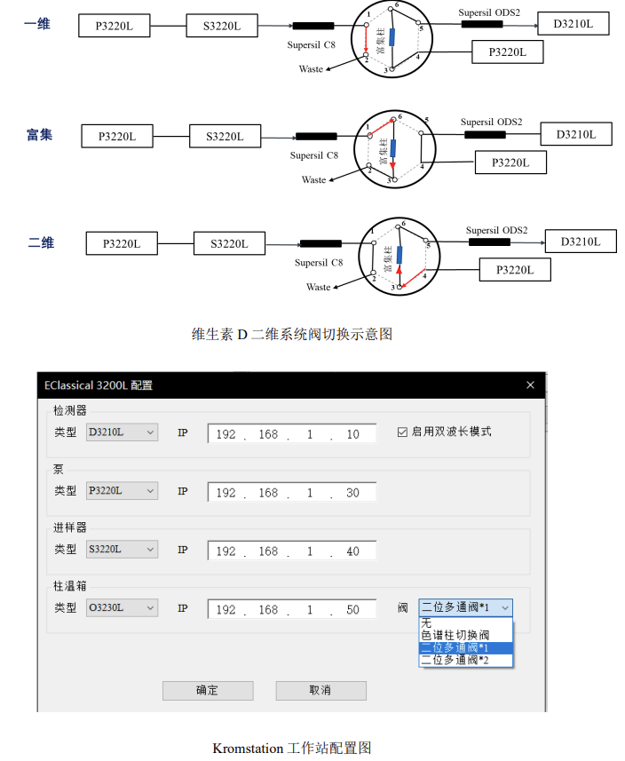 根據(jù)以上實驗數(shù)據(jù),Kromstation 色譜數(shù)據(jù)工作站可以實現(xiàn)對 EClassical 3200L 二維系統(tǒng)的全反控。根據(jù) GB 5009.296-2023《食品安全國家標(biāo)準(zhǔn) 食品中維生素 D 的測定》第二法:在線柱切換 - 反相液相色譜法(二維液相色譜法)分離維生素D_2、D_3,Kromstation 色譜數(shù)據(jù)工作站可以自動實現(xiàn)二維系統(tǒng)的閥切換完成維生素D_2、D_3的分離,且實驗結(jié)果具有良好的重復(fù)性和分離度,滿足對維生素 D 同分異構(gòu)體的分離檢測需求。