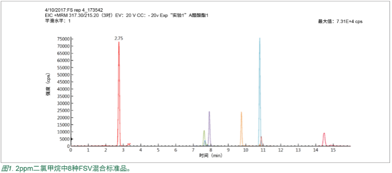 基于上述考慮,本文提出了分析物在 100% 二氯甲烷中溶解 / 稀釋并通過反相 UHPLC-MS/MS 分析 FSV 的一種方法。
