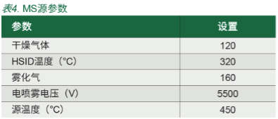 LC 和 MS/MS 方法參數(shù)分別見表 2、表 3、表 4。