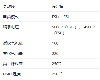 2. 質(zhì)譜參數(shù)(ESI+ EClassical 3200L-MS2 Vertical 9100 三重四極桿質(zhì)譜儀)?