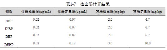 由表 1-8 知:檢測(cè)樣品中含鄰苯二甲酸二異丁酯 (DIBP) 125mg/kg,鄰苯二甲酸二 - 2 - 乙基己酯 (DEHP) 4290mg/kg,鄰苯二甲酸丁芐酯 (BBP) 和鄰苯二甲酸二丁酯 (DBP) 未檢出。