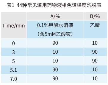 量取 0.5mL 混勻的試樣,置于 10mL 具塞塑料離心管中,加入 2mL 乙腈,渦旋混勻 2min,以 6000 rpm 下離心 3min。取上清液過 0.22μm 濾膜,待 LC-MS/MS 檢測(cè)。