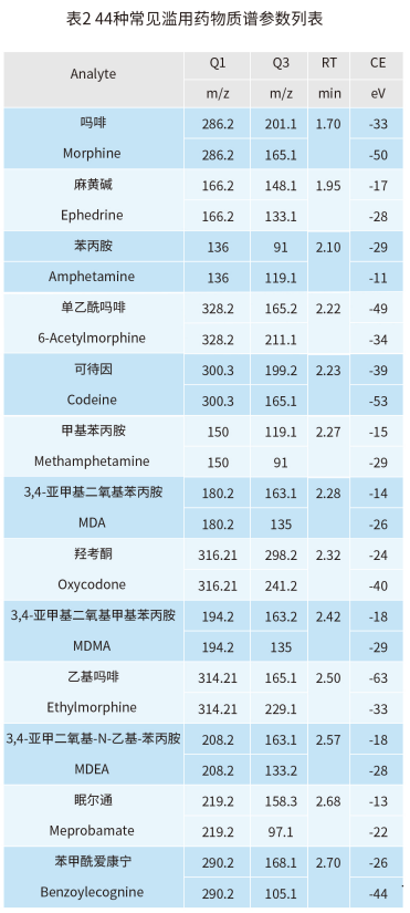 MS2 Vertical 9100 建立了快速、高靈敏度和可靠的 LC-MS/MS 實(shí)驗(yàn)方法測(cè)定常見 44 種濫用藥物的含量。實(shí)驗(yàn)結(jié)果表明,本方法具有分析速度快、線性范圍寬和靈敏度高等特點(diǎn),適用于司法刑偵領(lǐng)域中常見濫用藥物的定性定量分析。