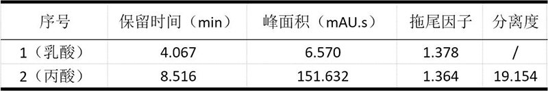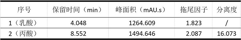 乳酸有很強(qiáng)的防腐保鮮功效,具有調(diào)節(jié)pH值、抑菌、延長(zhǎng)保質(zhì)期、調(diào)味、保持食品色澤、提高產(chǎn)品質(zhì)量等作用,可經(jīng)過(guò)丙酸氯化、水解得粗乳酸,再經(jīng)酯化、精餾、水解得產(chǎn)品。依利特使用EClassical 3200高效液相色譜儀匹配經(jīng)典Supersil AQ-C18色譜柱,對(duì)乳酸和丙酸進(jìn)行分析檢測(cè)。
