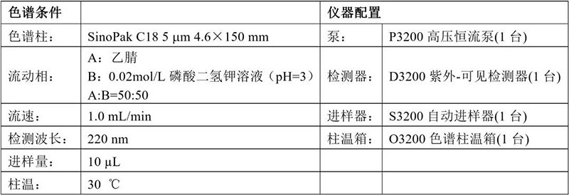 色譜條件及配置