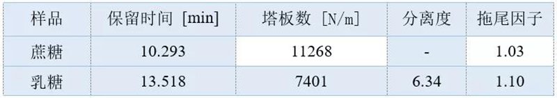 表1 蔗糖及乳糖混合標準品結(jié)果表
