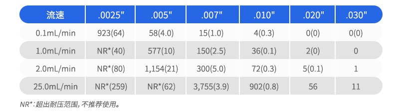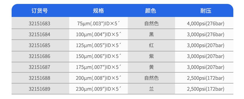 所有PEEK毛細(xì)管的內(nèi)徑和外徑的公差均在±0.0005"以內(nèi)。