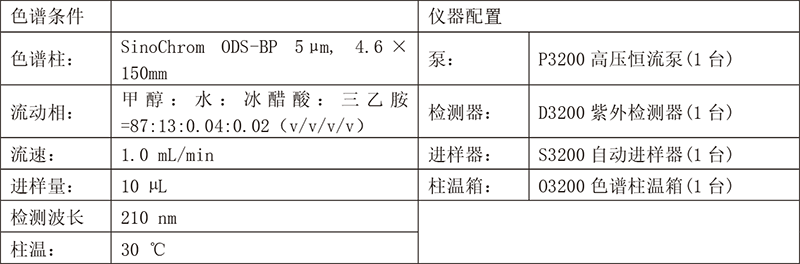 依利特新款的EClassical 3200液相色譜儀搭配經(jīng)典的SinoChrom ODS-BP色譜柱,對(duì)中藥黑種草子樣品進(jìn)行分析,峰形良好,分離度較好,滿(mǎn)足定性定量分析的需求。