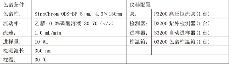 北劉寄奴是一味活血藥,是玄參科植物陰行草的干燥全草。北劉寄奴味苦,性寒,歸脾、胃、肝、膽經(jīng),有活血祛瘀,通經(jīng)止痛之功效。依利特使用EClassical 3200液相色譜儀匹配經(jīng)典的SinoChrom ODS-BP色譜柱,對(duì)北劉寄奴樣品中木犀草素含量進(jìn)行分析檢測(cè)。