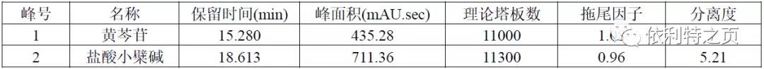 理論板數(shù)按鹽酸小檗堿峰計(jì)算應(yīng)不低于5000。